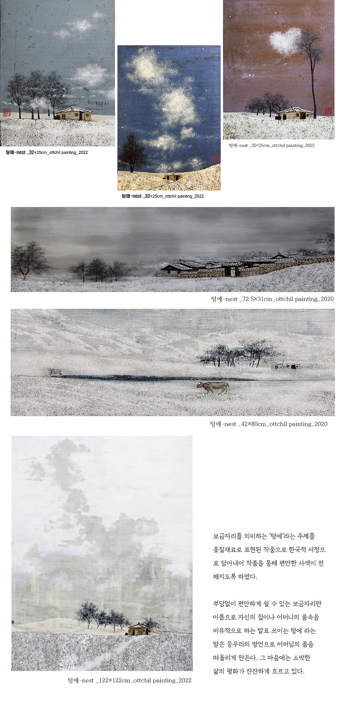 한국적 서정으로 담아내어 작품을 통해 편안한 사색이 전해지도록 하였다.